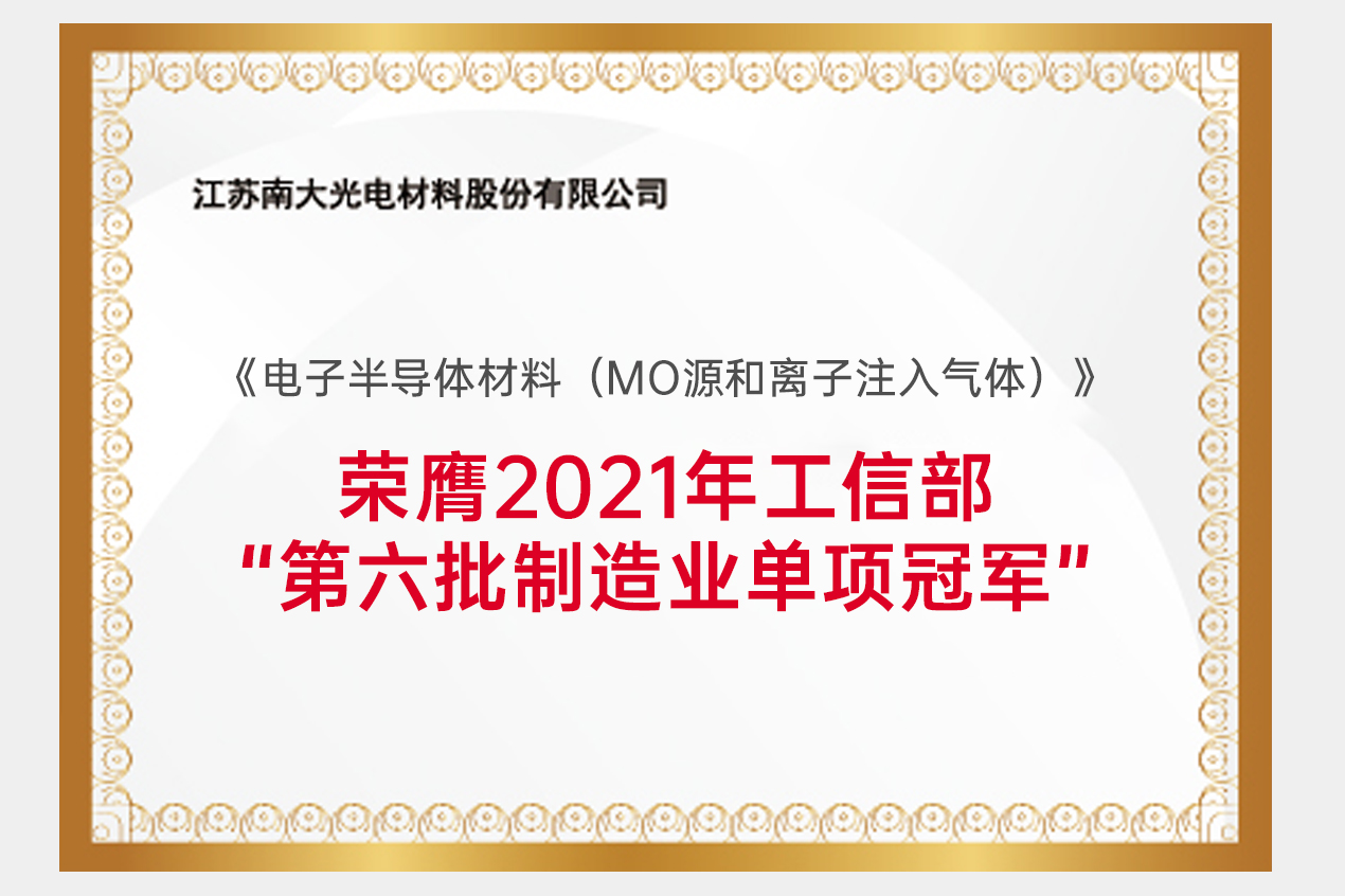 南大光電《電子半導(dǎo)體材料(MO源和離子注入氣體)》榮膺2021年 工信部“第六批制造業(yè)單項(xiàng)冠軍”。